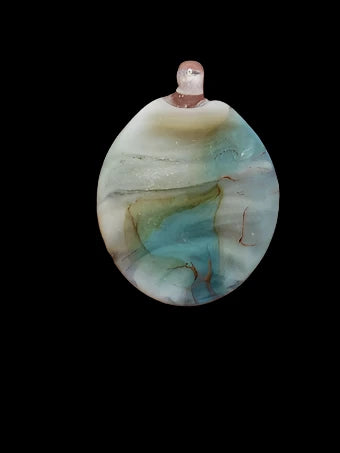 Fusible COE 96 XL Turquoise Green/Cream Swirls Glass Sitting Bail