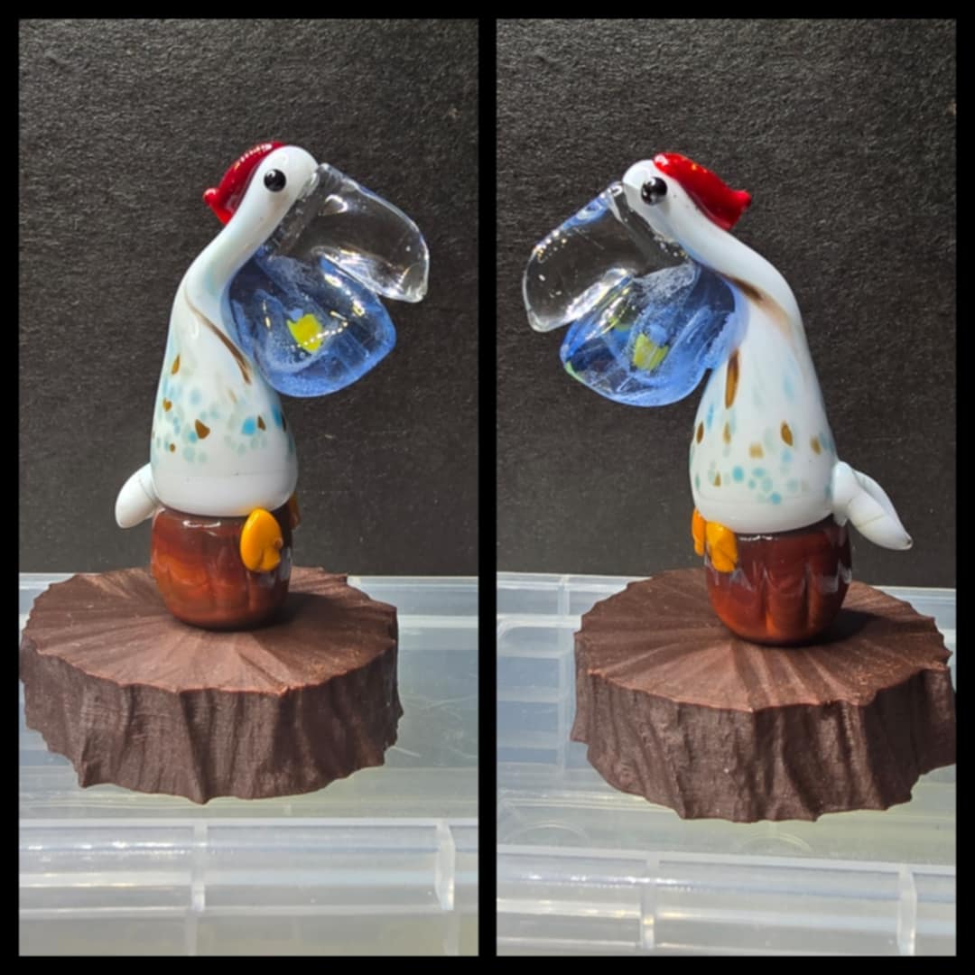 Glass Cute Pelican with fish in mouth