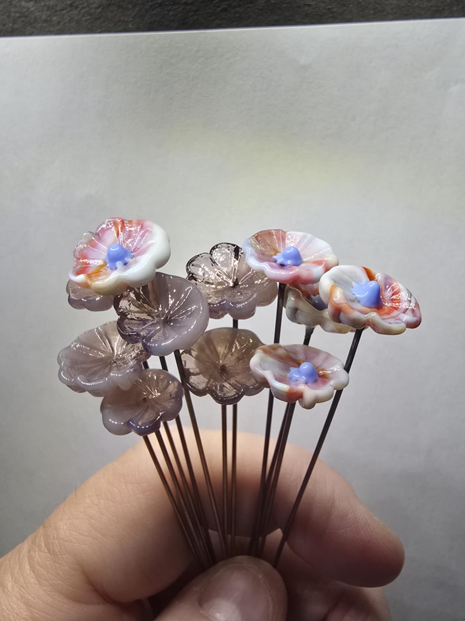These glass flowers are tiny approximately 1/2" in diameter and they are beautiful! All my glass flowers are made in my shop in Georgia.