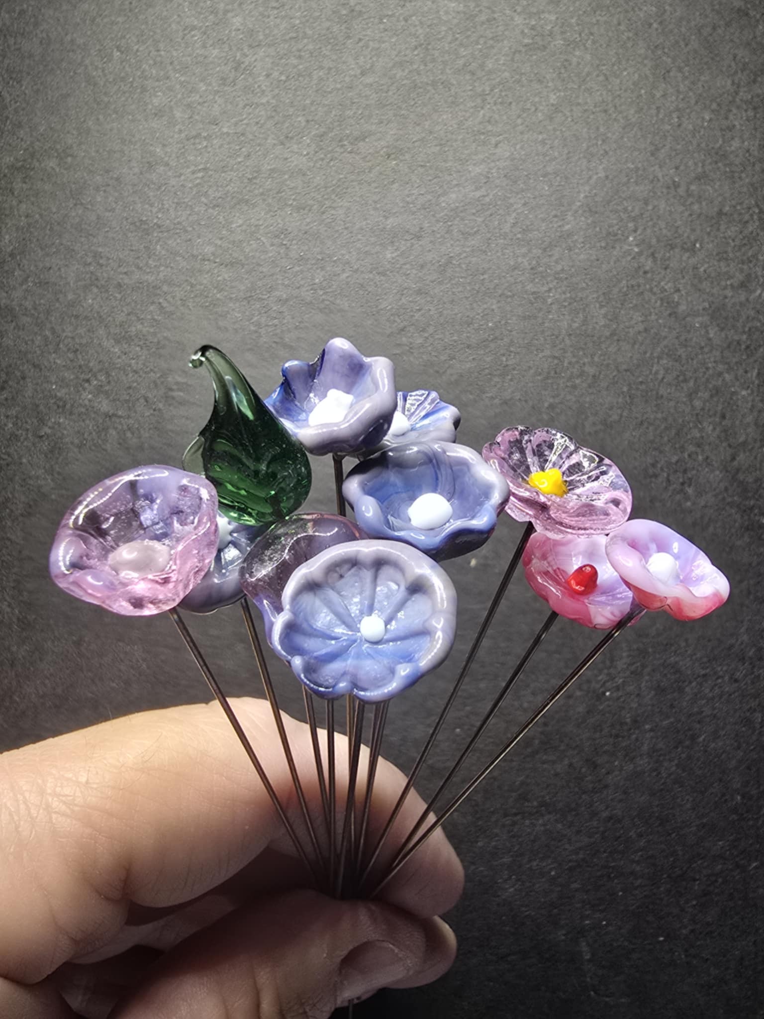 These glass flowers are tiny approximately 1/2" in diameter and they are beautiful! All my glass flowers are made in my shop in Georgia.